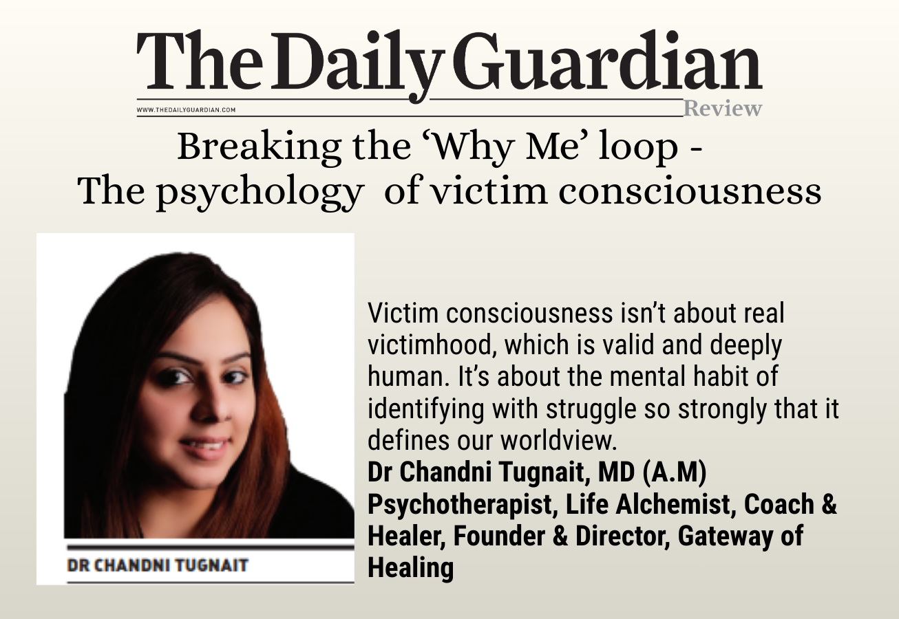 Dr Chandni Tugnait, MD (A.M), Psychotherapist, Life Alchemist, Coach & Healer, Founder & Director, Gateway of Healing, shares what makes this loop so tricky, and how to break free from it:
